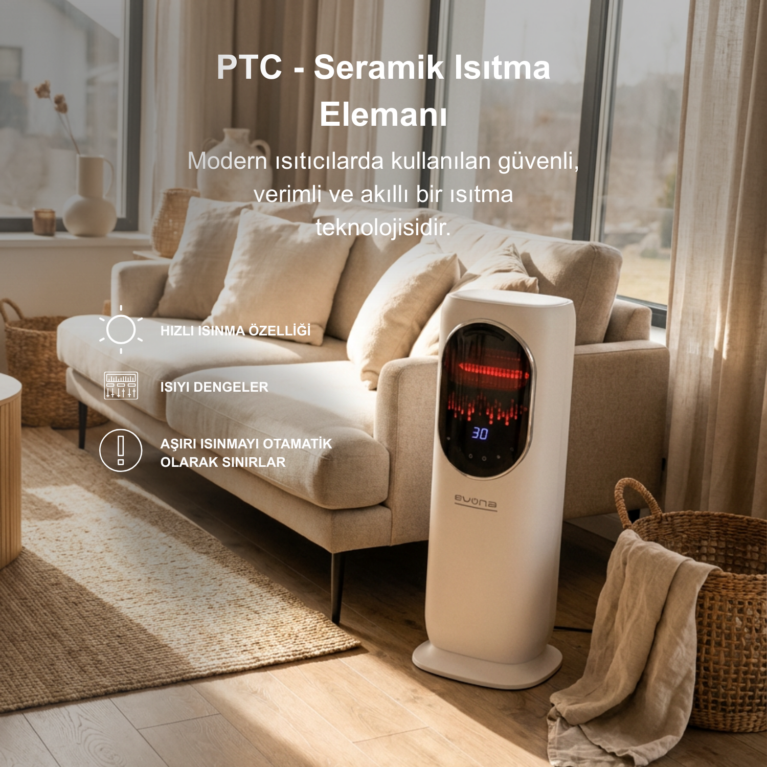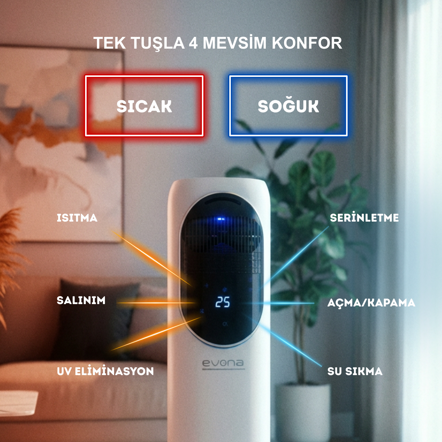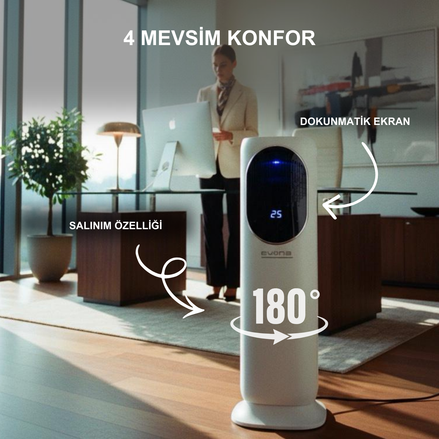 Evona Isıtıcı & Soğutucu , yalnızca bir ısıtıcı değil yılın her günü mükemmel iç mekân dengesini sağlayan akıllı bir iklim istasyonu.