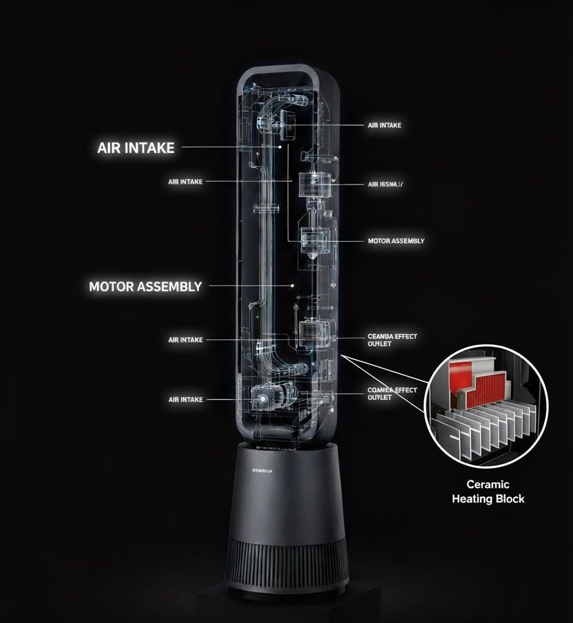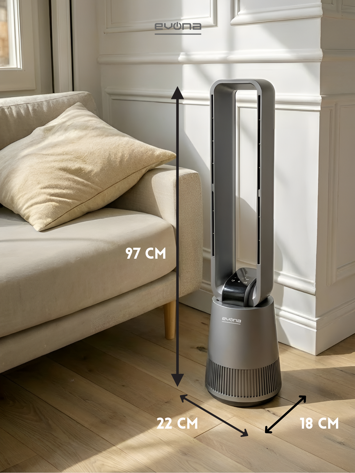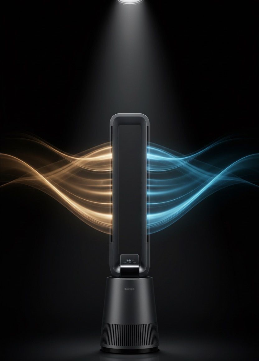 EVONA AuraHeat, bıçaksız hava akışı teknolojisiyle maksimum güvenlik ve sessiz performansı bir arada sunar. Modern tasarımı, akıllı sıcaklık kontrolü ve uzaktan kumandasıyla yaşam alanlarınıza şıklık ve konfor katar.