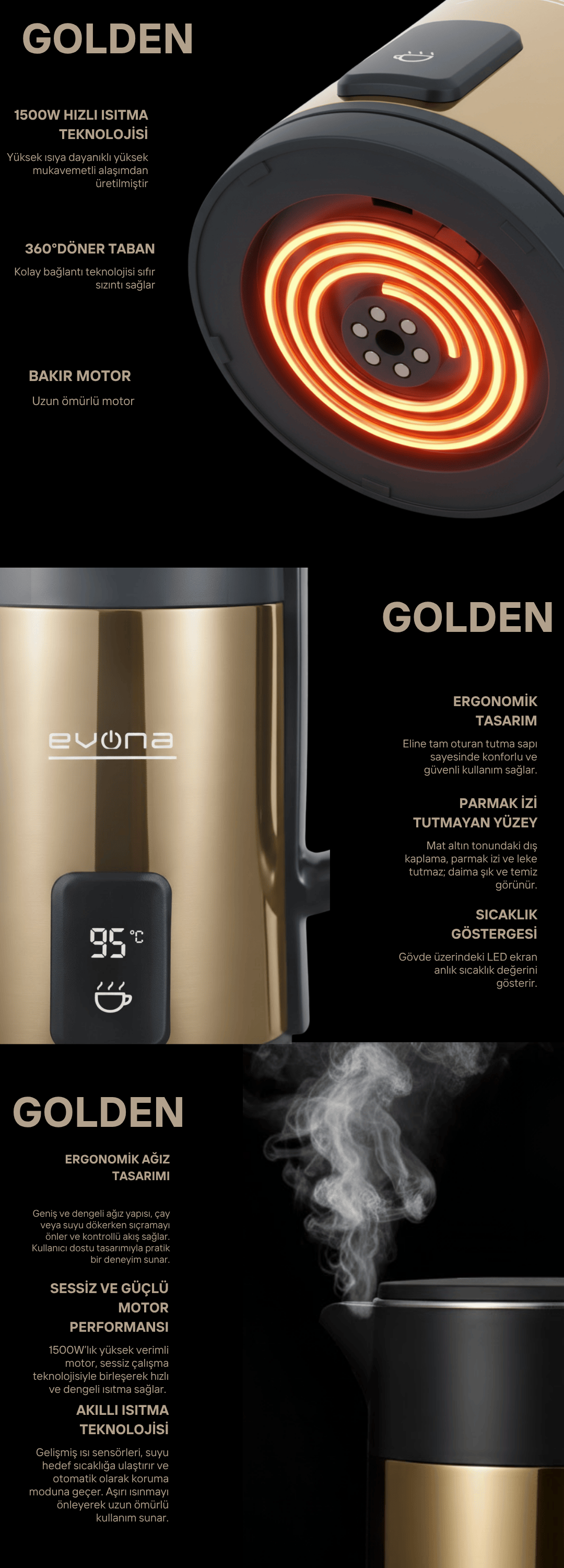 Altın tonlarının asil ışıltısını modern tasarımla buluşturan Evona Golden Kettle,